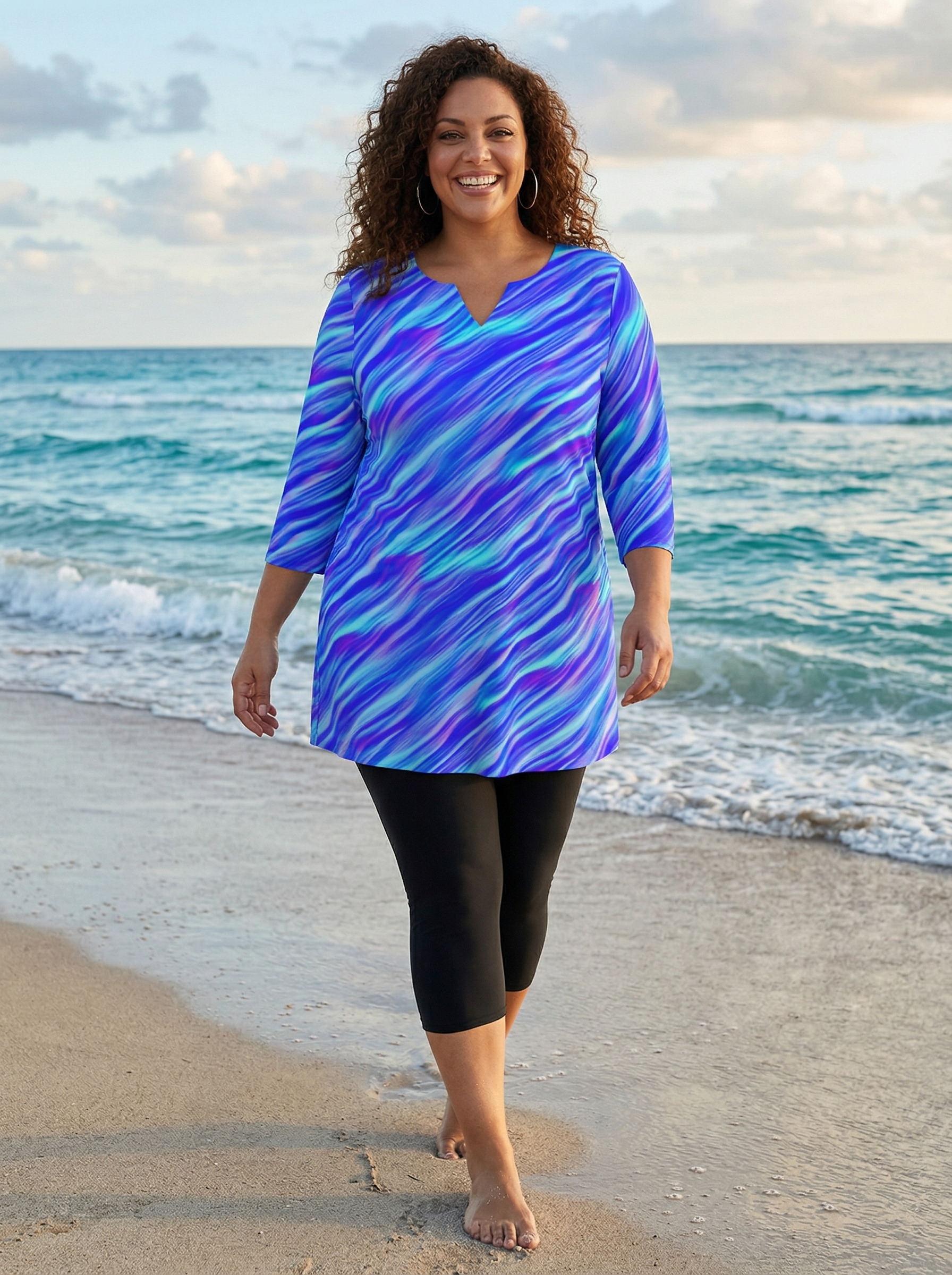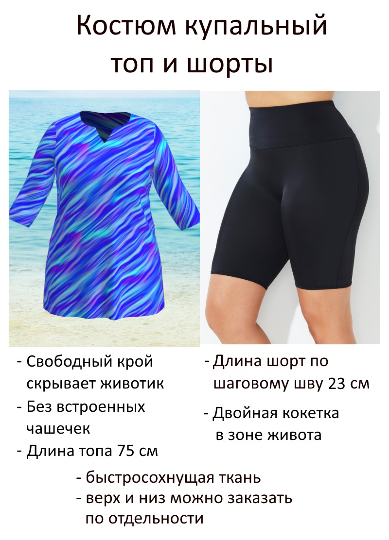 Удлиненный купальный топ с фигурным вырезом горловины. модель удачно комбинируется с плавательными шортиками или капри. Длина рукава слегка укороченная - 55 см